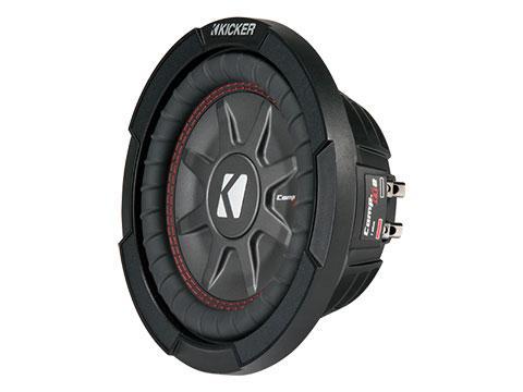 The CompRT 8" thin subwoofer by Kicker is a weather resistant thin sub with a 2Ω dual voice coil design. This thin 8 inch sub magnet structure delivers 300W RMS of power with a chassis mounting depth of just under 2 3/4". The Kicker designed UniPlate™ back plate and solid pole piece serve as a single heat-absorbing unit to keep this 8" CompRT thin subwoofer driver nice and cool.